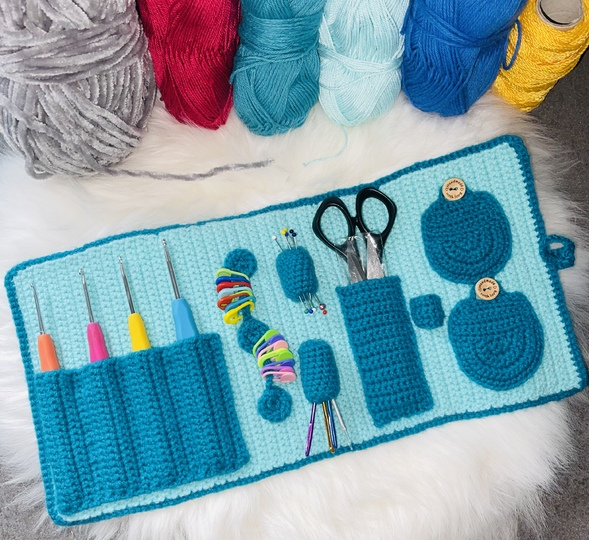 Mit dieser Häkelanleitung wird Schritt für Schritt erklärt, wie die Aufbewahrung für Handarbeiten anzufertigen ist.