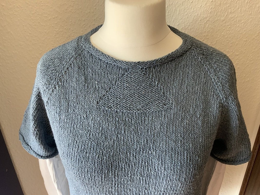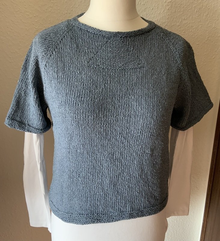 Das Muster ist in aus einer fast reinen Recycling-Baumwollmischung gestrickt. Auch aus anderen Baumwollmischungen macht das Shirt bestimmt eine gute Figur.