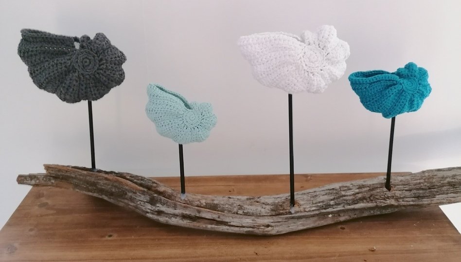 Mit dieser Häkelanleitung könnt Ihr Euch den Sommer ins Haus holen. Die Muscheln können als Deko, als kleine Geschenkverpackung, als Übertopf, oder als kleines Täschchen genutzt werden.