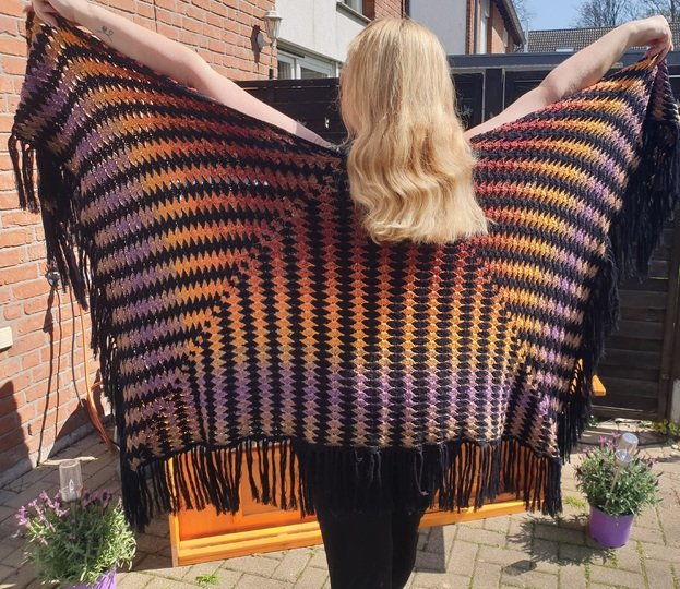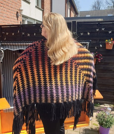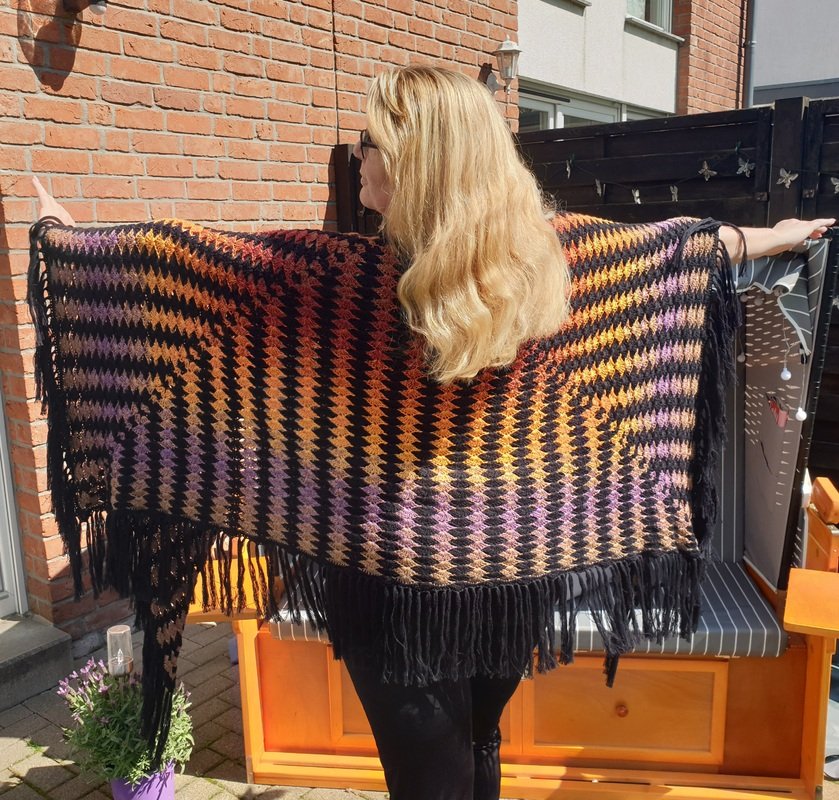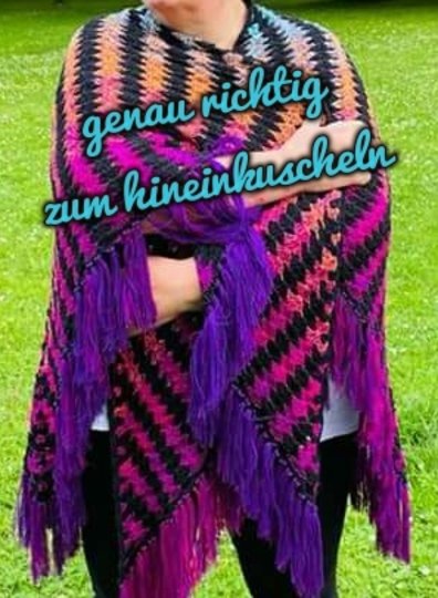 Colours II ist ein V-Tuch (hier NICHT enthalten!), zu finden unter: https://www.crazypatterns.net/de/items/81480/haekelanleitung-kontrasttuch-colours-ii-in-moderner-v-form