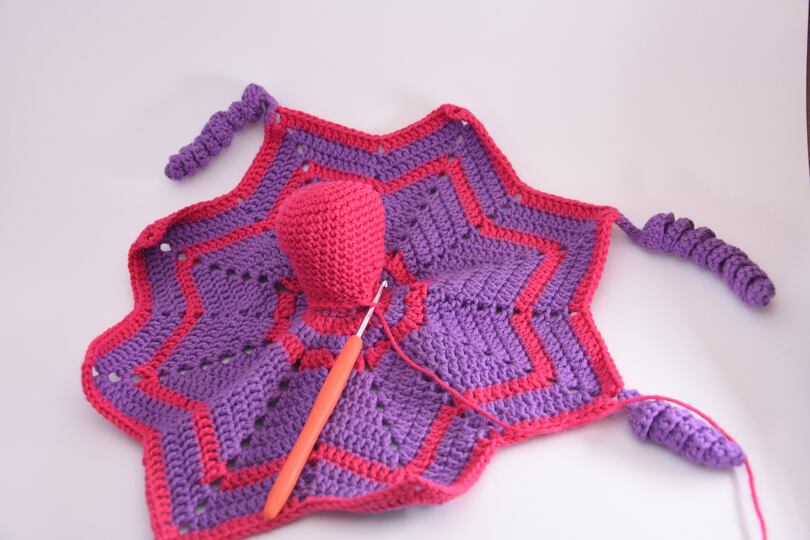 Es werden lediglich feste Masche, Stäbchen, zu- und abnahmen benötigt.