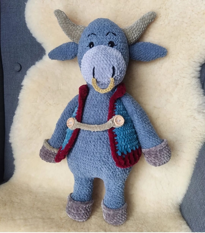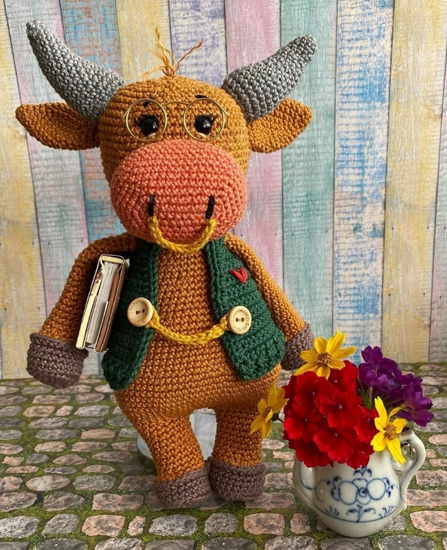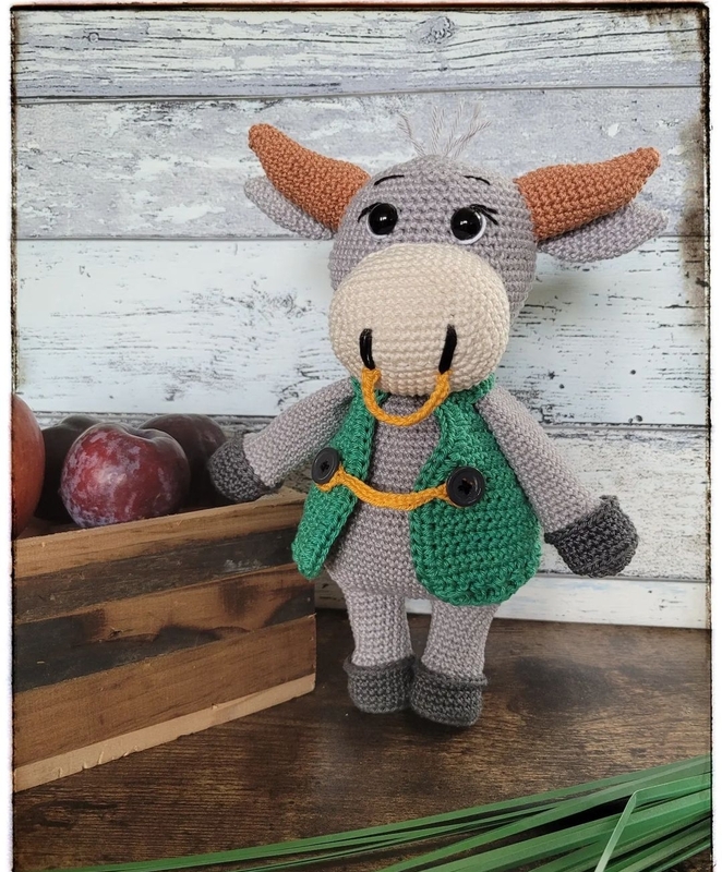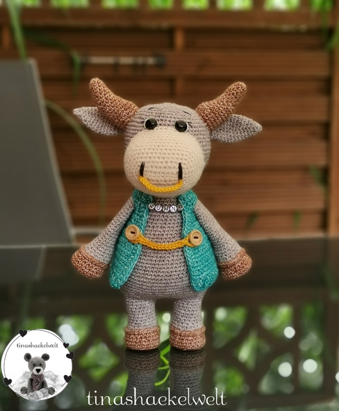 Mit dem von mir verwendetem Garn wird Kuhno ca. 27cm groß.