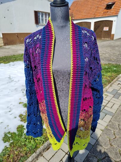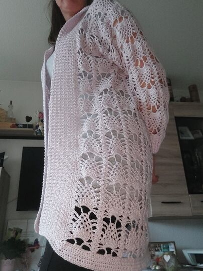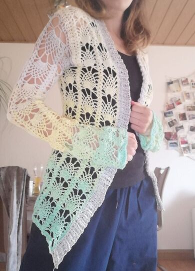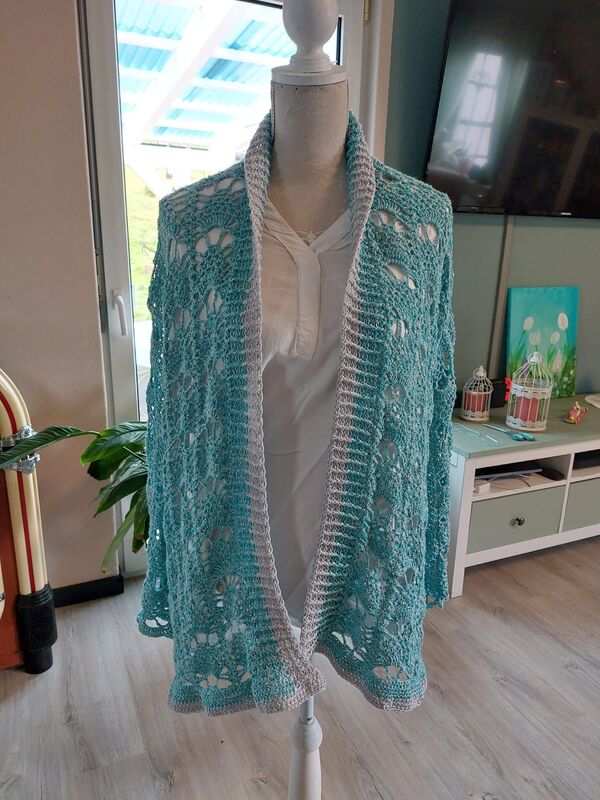 Tolle, luftige Häkeljacke, ideal für gemütliche Abende im Sommer, oder über einen Pulli drüber.