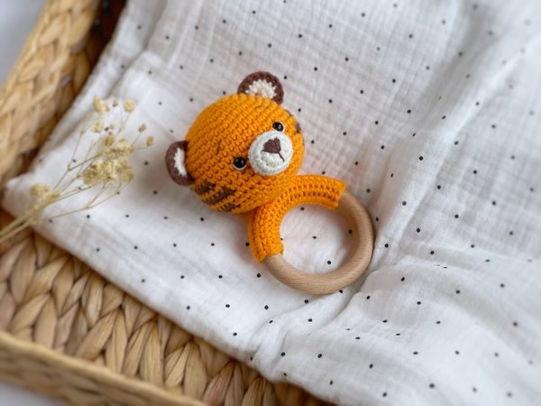 Babyrassel Tiger - https://www.crazypatterns.net/en/items/76928/crochet-pattern-baby-rattle-tiger-pdf