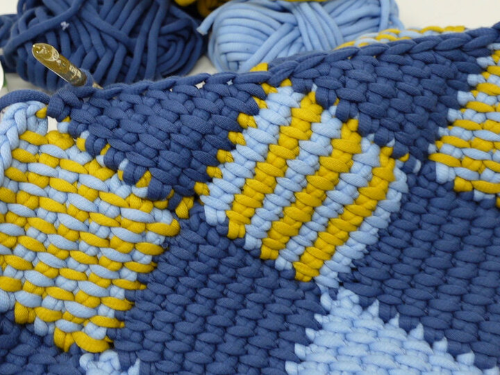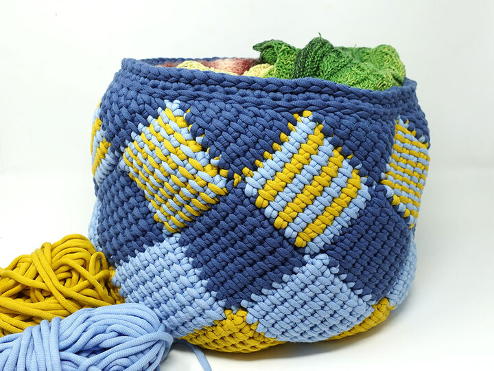 Dieser tolle Korb ist genau das richtige Projekt für heiße Tage. Denn die Woolly Hugs HOME ist angenehm an zu fassen. Die schönen frischen Farben machen einen gut dekorierten Tisch zu etwas besonderem. Da schaut man gerne hin und erfreut sich an hübschen Dingen. Die Machart ist tunesisches Entrelac, es hört sich kompliziert an, aber es ist ganz einfach. Wer häkeln kann, schafft auch diesen hübschen Korb.