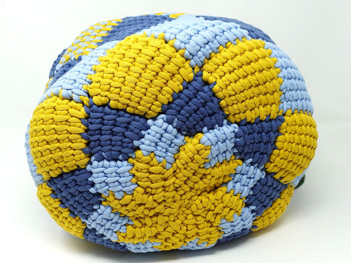 • Je 200 g (2 Knäuel) Gelb (Farbe 22), Hellblau (Farbe 56) und Dunkelblau (Farbe 58)