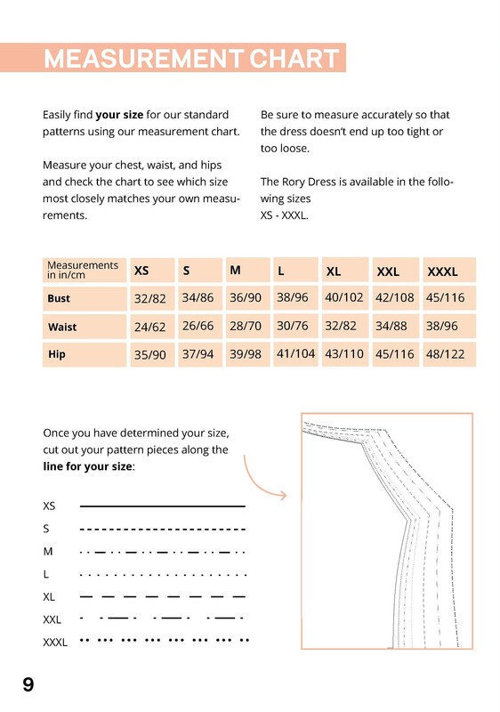 • Schnittmuster für das Kleid in den Größen XS-XXXL inkl. aller Nahtzugaben als PDF in A4 zum Download