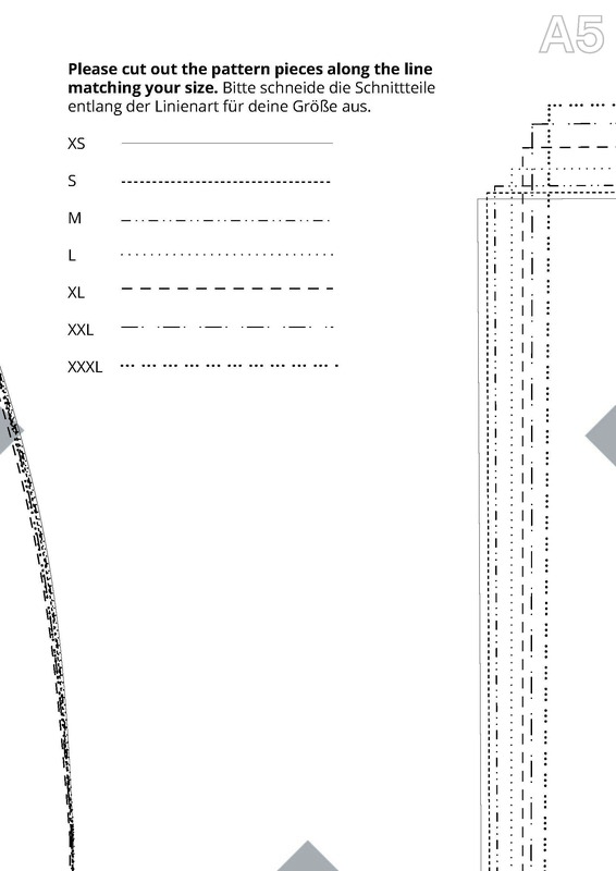 Die Größen XS-XXXL sind als Schnittmuster für das Kleid enthalten.