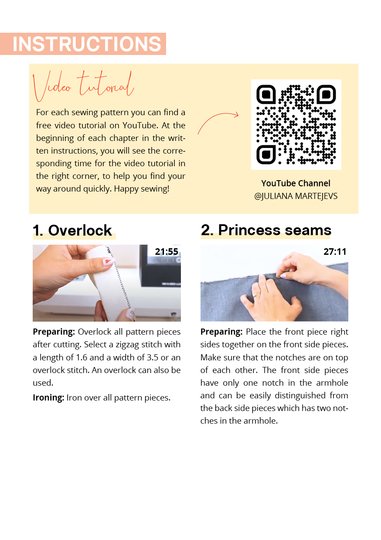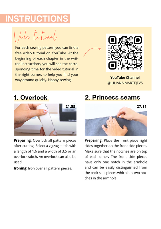 Wenn du dein Schnittmuster heruntergeladen, zusammengeklebt und die Materialien beisammen hast, freue dich auf den spaßigen Produktions-Prozess, der jetzt folgt! Falls du noch nie genäht hast, schau dir als erstes unser Nähmaschinen Grundlagen Video-Tutorial auf unserem YouTube-Kanal an. In wenigen Minuten erfährst du alle Basics, die du für jedes JULIANA MARTEJEVS Nähprojekt benötigst. Dann klick einfach auf die zu deinem Projekt passende Video-Anleitung und los geht’s!