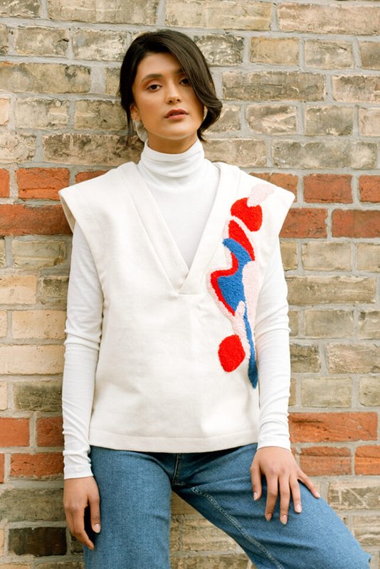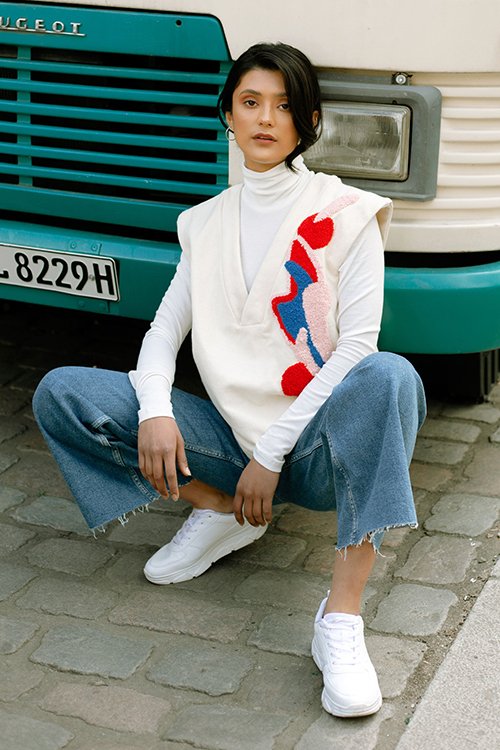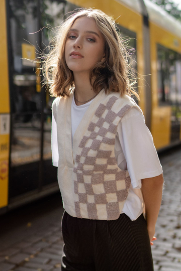 Das neue Lieblingshandwerk im JULIANA MARTEJEVS Team: Punch Needling. Noch nie gehört? Dann lass es uns dir kurz erklären: Mit einer sogenannten Punch Nadel verzierst du den Stoff mit einem individuellen Muster, indem du von oben nach unten durch die kleinen Löcher in unserem hochwertigen Mönchstoff stichst. Der Rest passiert wie von selbst. Anschließend nähst du den einzigartigen Stoff zu deinem Pullunder zusammen. Super einfach und ein riesiger Spaßfaktor – versprochen! Juliana erklärt euch in unserer passenden Video-Anleitung wie immer, wie genau es geht. Genau, wie den Basic Pullunder, gibt es den Punch Pullunder in zwei möglichen Längenvarianten: taillenlang oder hüftlang.