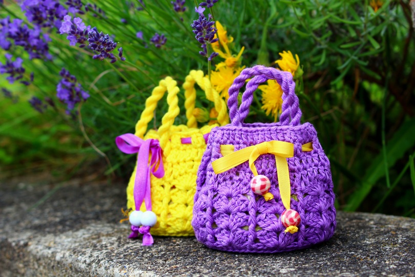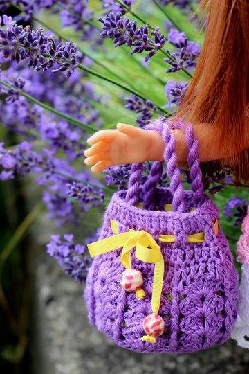 Puppen Häkeltasche. Sommerlich im Design. Der perfekte Begleiter für den Alltag und Ausflüge! Ein ideales Geschenk für die Tochter oder Enkelin.