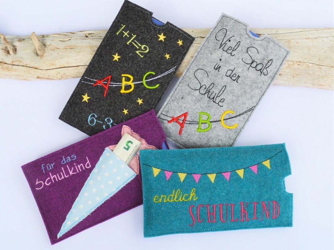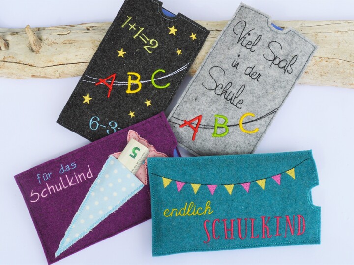 Zusätzlich ist eine Hülle mit einer doodle Applikation (oval) enthalten, hier kann man selber noch den Namen des Schulkindes einfügen.