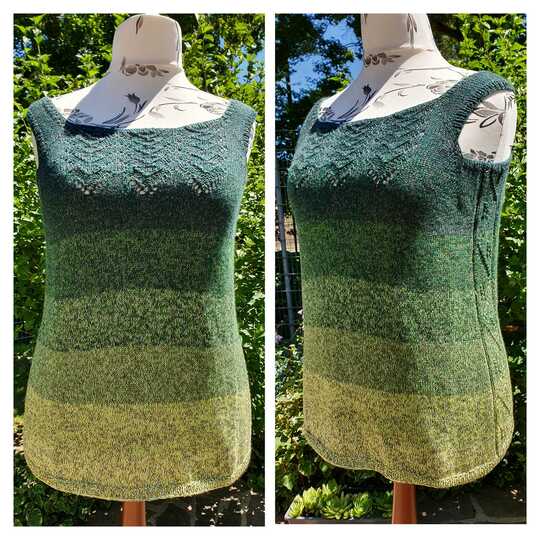 Ein weiteres Sommer-Top ist für Euch entstanden. Auch wieder in der beliebten RVO-Technik, die gerade in größeren Größen optimal variabel und sehr individuell strickbar ist.