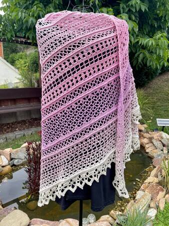 Die Muster lassen sich verkürzen und mit jedem beliebigen Mustersatz kann man das Tuch auch verlängern.