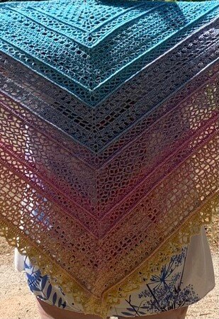 Anleitung für ein klassisches oder flaches Dreieckstuch mit vielen verschiedenen Muster, das als CAL in der FB-Gruppe "Häkelnudel" stattfand.