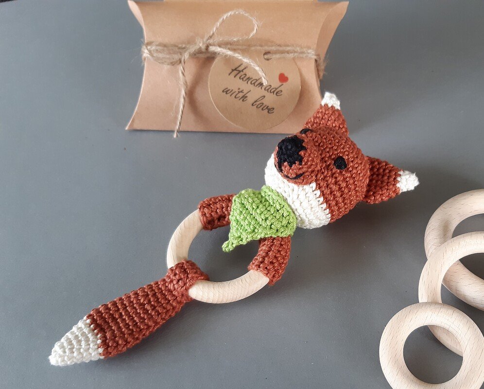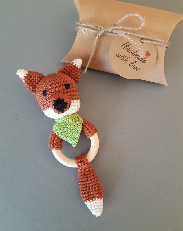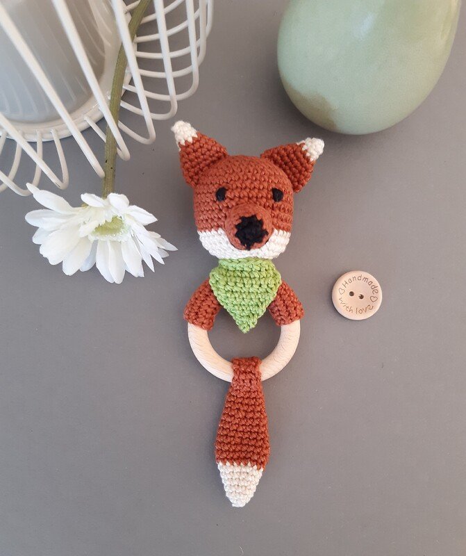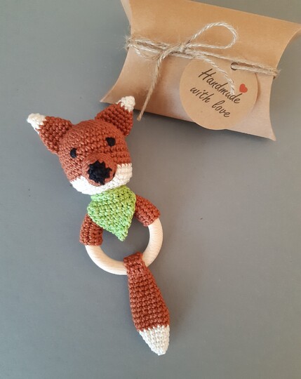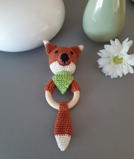 Mit Hilfe dieser Anleitung kannst du diese süße Fuchs-Babyrassel häkeln.