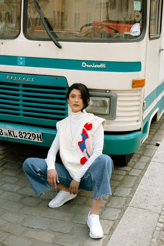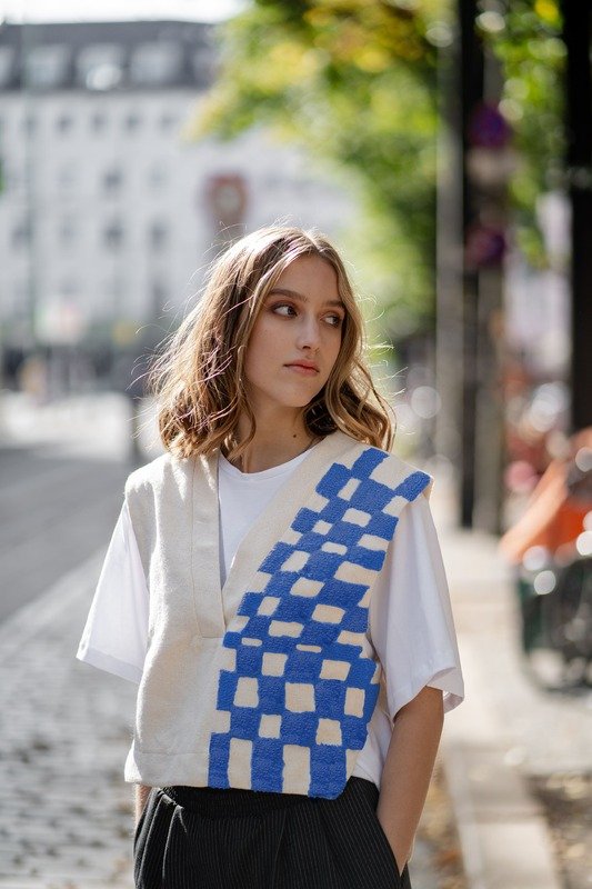 Das neue Lieblingshandwerk im JULIANA MARTEJEVS Team: Punch Needling. Noch nie gehört? Dann lass es uns dir kurz erklären: Mit einer sogenannten Punch Nadel verzierst du den Stoff mit einem individuellen Muster, indem du von oben nach unten durch die kleinen Löcher in unserem hochwertigen Mönchstoff stichst. Der Rest passiert wie von selbst. Anschließend nähst du den einzigartigen Stoff zu deinem Pullunder zusammen. Super einfach und ein riesiger Spaßfaktor – versprochen! Juliana erklärt euch in unserer passenden Video-Anleitung wie immer, wie genau es geht. Genau, wie den Basic Pullunder, gibt es den Punch Pullunder in zwei möglichen Längenvarianten: taillenlang oder hüftlang.
