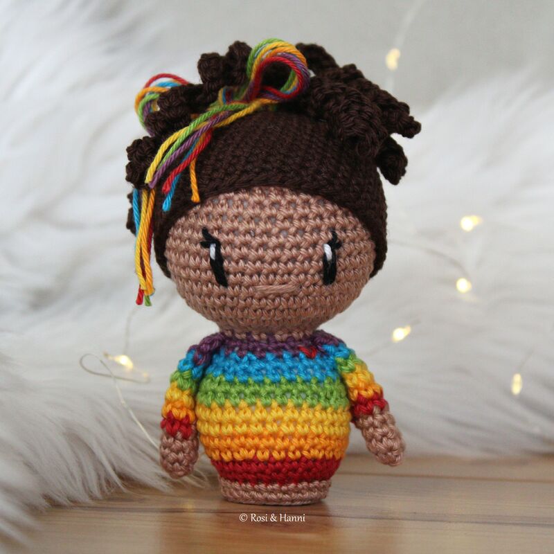 Mit dieser ausführlich beschriebenen und bebilderten Anleitung kannst du "Regenbogen Robin“ ganz einfach nacharbeiten. In der Anleitung sind beide Haarvarianten enthalten, so dass sich dir viele verschiedene Gestaltungsmöglichkeiten bieten. Zum Verschenken, Weitergeben oder selbst behalten, mache dir und anderen mit einem persönlichen Glücksbringer eine ganz besondere Freude.