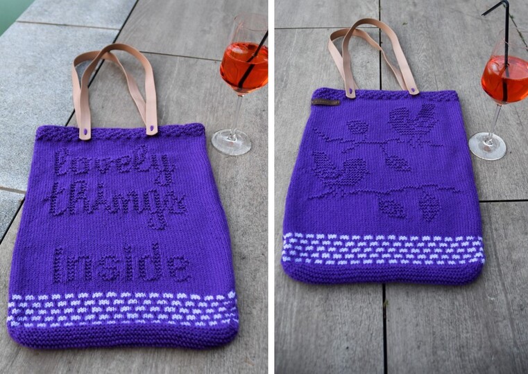 Diese Tasche ist etwas ganz Besonderes – ein absolutes Unikat, für Dich oder für einen lieben Menschen. Auf der einen Seite ist der Schriftzug "lovely things inside" eingestrickt, auf der anderen Seite ist ein bezauberndes Vogelmotiv. Du kannst die Tasche als Einkaufstasche, kleine Beach Bag oder sogar als Geschenkverpackung verwenden 😊 Vielleicht magst du darin auch Dein nächstes Strickprojekt aufbewahren, oder ein paar Knäuel Wolle… Verwendung für diese schöne Tasche findest Du ganz bestimmt, so dass Du lange Freude daran hast.