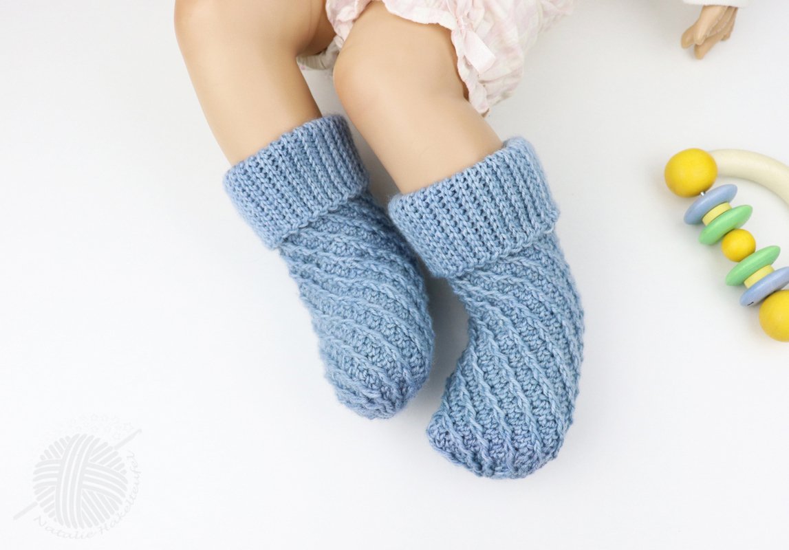 Weiche Spiralsocken für Babys und Kinder im Stricklook für Dein Kind oder Enkelkind zu häkeln, ist mit dieser Anleitung überhaupt kein Problem!