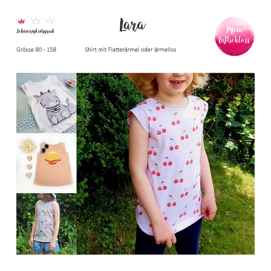 Das Shirt ist ein Schnittmuster für Mädchen von Grösse 80-158. Es kann mit Flügelärmeln oder auch ärmellos, dann mit Belegen genäht werden. Es ist schlicht und ohne komplizierte Details. Jeder Schritt ist bebildert. Mit verschiedenen Stoffen, Bündchen, Applikationen, Taschen und Tüdeleien kannst du deiner Fantasie freien Lauf lassen und wunderbare Unikate nähen. Der Schnitt orientiert sich an der effektiven Grösse des Kindes. Jetzt brauchst du eigentlich nur Stoff, eine Nähmaschine und gute Ideen...