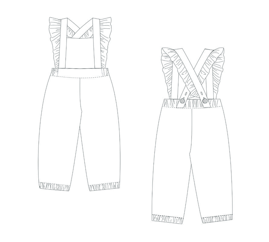 Mit dem Schnittmuster DAISY nähst du eine verspielte Mädchen-Latzhose im Overall-Stil mit liebevollen Details: Rüschen-Träger vorne und hinten, überkreuzte Rückenträger sowie Gummizug in Taille und Beinsaum für optimalen Sitz und hohen Tragekomfort. DAISY ist ein echtes Ganzjahres-Lieblingsstück – im Sommer mit T-Shirt, im Herbst und Winter mit Langarmshirt oder Pullover.