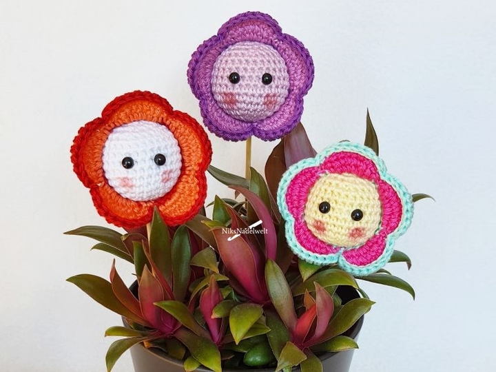 Die süße Blume ist schnell aus Wollresten gehäkelt und verschönert jeden Blumentopf oder Blumenstrauß. Auch als Schlüsselanhänger verbreitet sie gute Laune. Das bunte Blümchen kannst du natürlich auch für deine Lieben häkeln, sie werden lange etwas von der Blume haben, denn sie verwelkt nie ;)