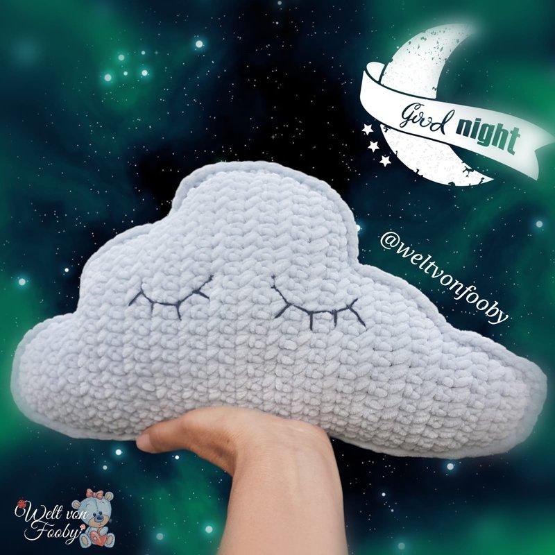 Mit dieser schönen Anleitung kannst du dir deine eigene Kuschelwolke häkeln, die du für vieles verwenden kannst. In dieser Anleitung erkläre ich dir die Grundform und keine Ausschmückung. Diese überlasse ich deiner Kreativität. Anhand meiner vielen Bilder siehst du sie als Spieluhr oder auch als Kuschelkissen gearbeitet. Hab viel Freude beim nacharbeiten.
