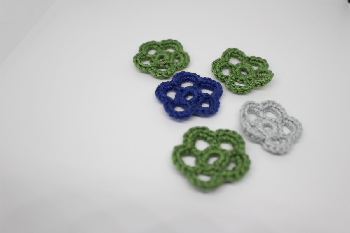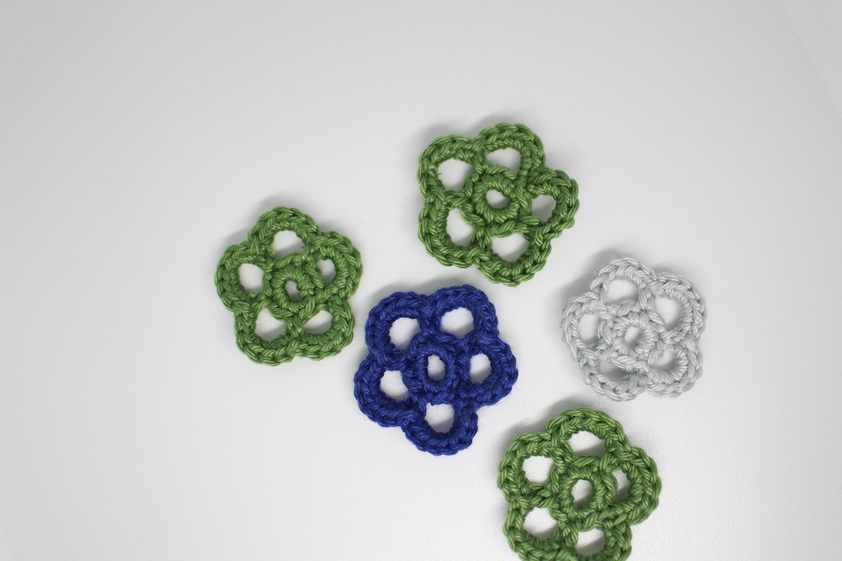 Mit dieser Anleitung kannst du im Handumdrehen deine eigenen Mini-Blüten häkeln. Sie haben einen Durchmesser von nur 2,5 bis 3cm und können vielseitig eingesetzt werden, hier ein paar Ideen: