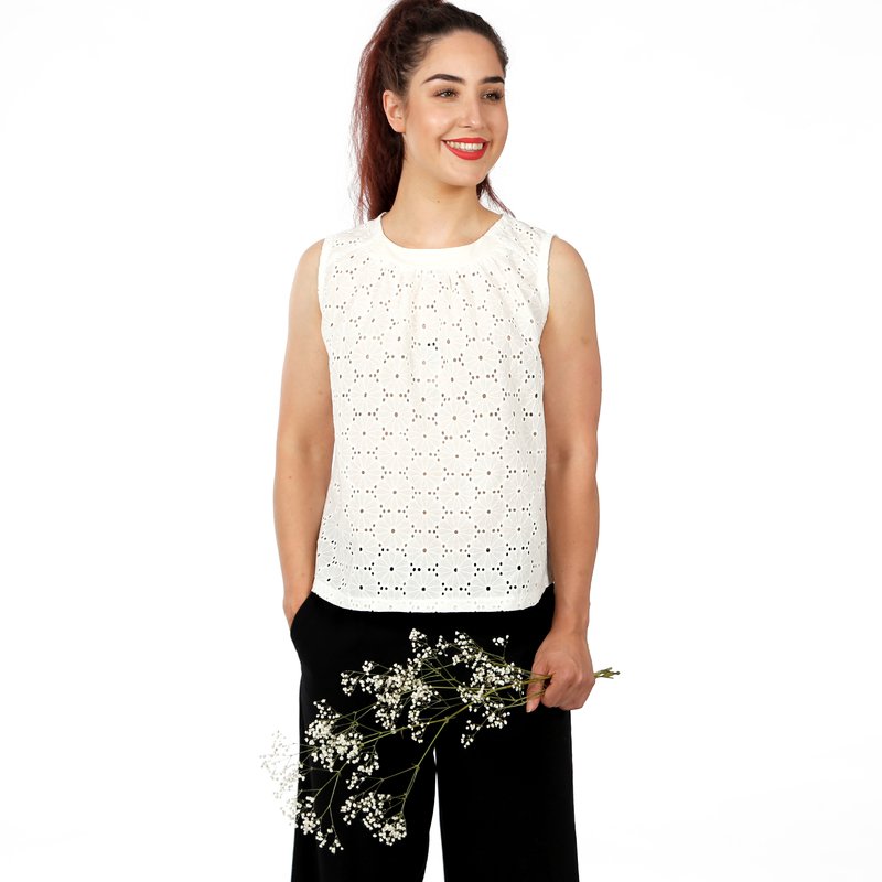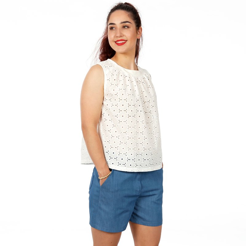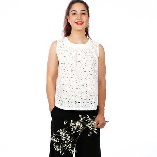 Mit FRAU ENYA kommen die Komplimente nur so angeflogen. Dieses Top ist ein sommerlicher Hingucker mit tollen Details. In den Rundhalsausschnitt ist ein Einsatz aus Bündchenware eingearbeitet, an dem sich das Vorderteil kräuselt, so entsteht eine luftige Weite. Die Schulterpassen sorgen für eine interessante Linienführung. FRAU ENYA ist ein locker fallendes Lieblingsteil für unbeschwerte Sommertage.
