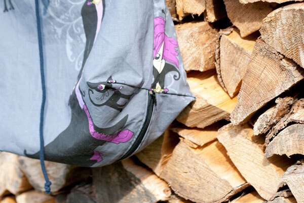 Zusätzlich brauchst Du einen 40cm Reißverschluss und 1,20m Kordel sowie Ösen, die groß genug für die Kordel sind. (Du kannst entweder Ösen einschlagen oder ein Knopfloch für den Tunnelzug nähen).