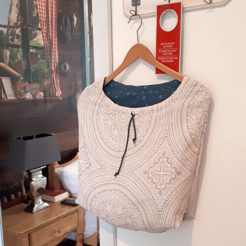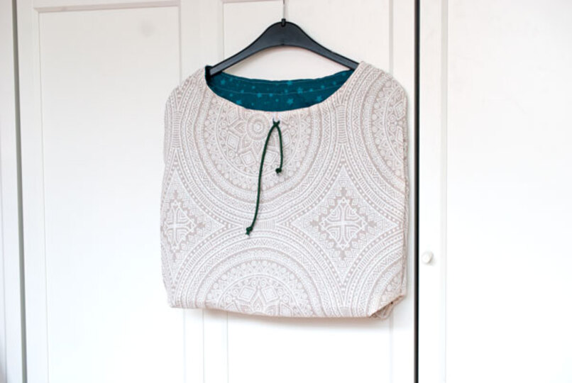 Der Wäschesack wird aus Webware genäht, gerne aus alter Bettwäsche.