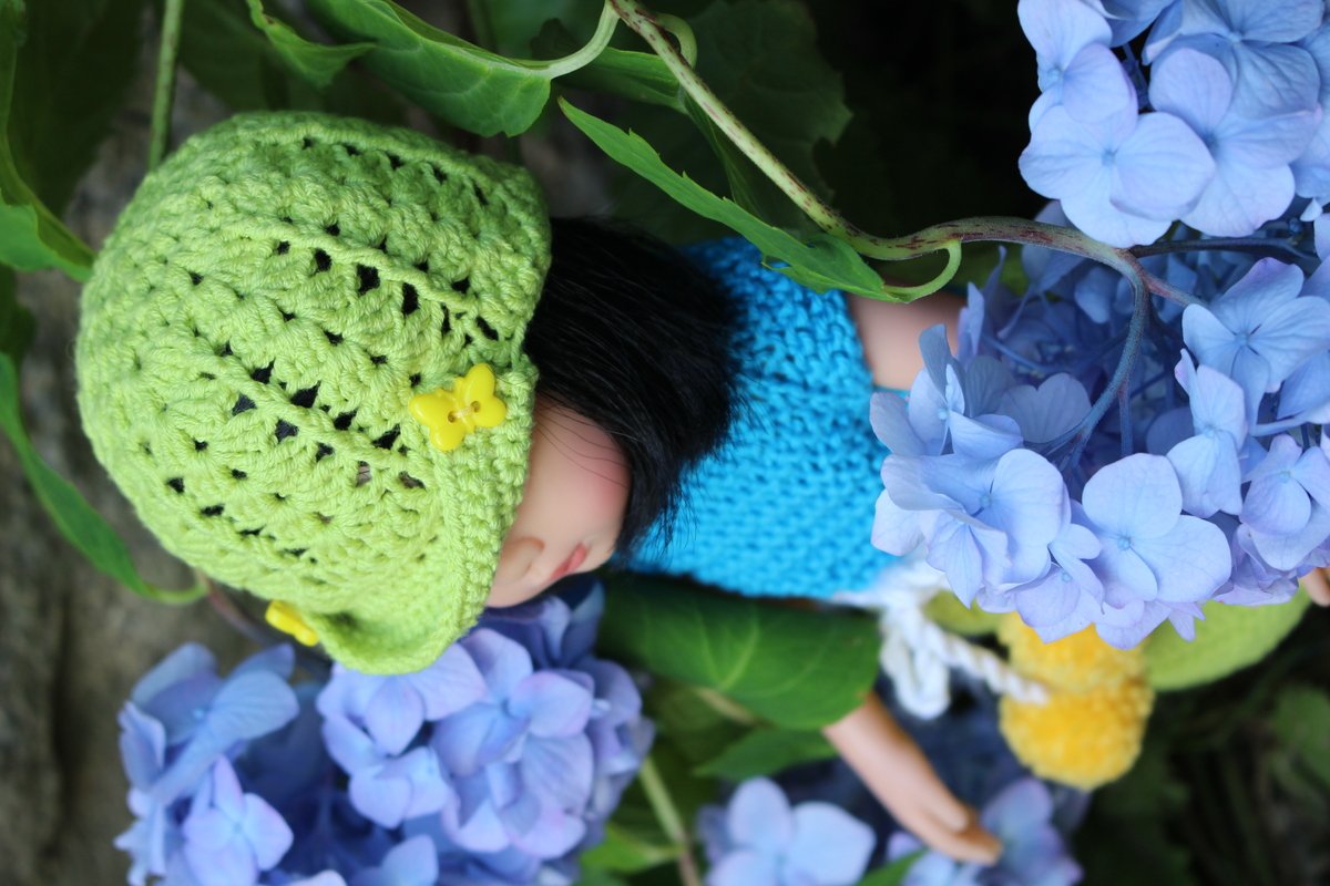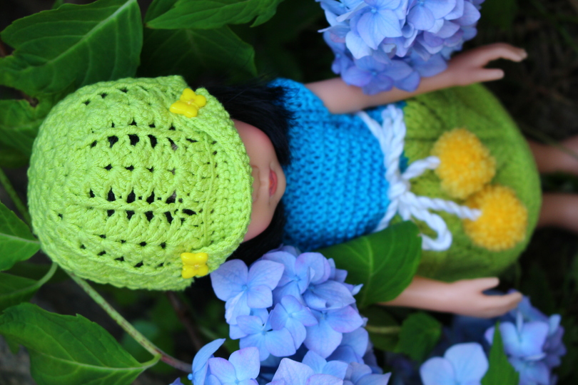 Puppen Häkelkappe. Sommerlich im Design. Ein ideales Geschenk für die Tochter oder Enkelin.