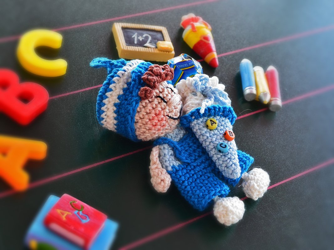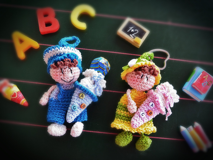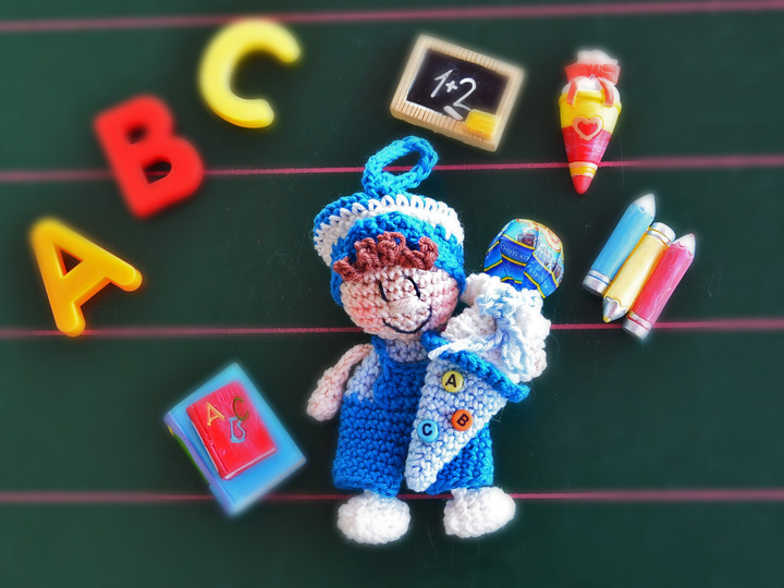 Häkelanleitung Schulanfang Junge mit befüllbarer Schultüte