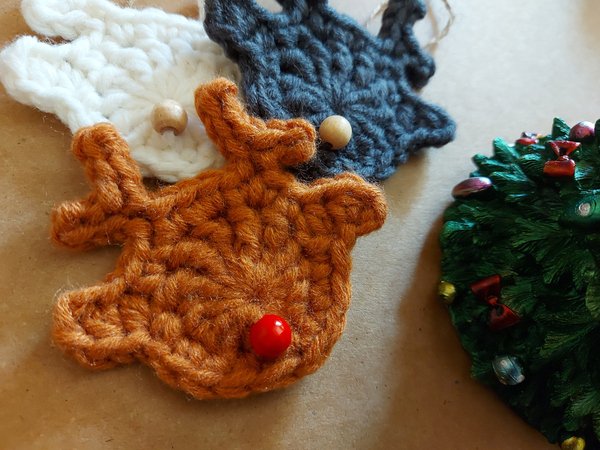 Du kannst jede Art von Wolle mit entsprechender Häkelnadel nutzen, um deinen eigenen Rentier-Schmuck herzustellen. Dann ändert sich natürlich die Größe dementsrechend.