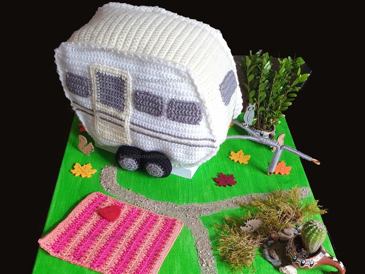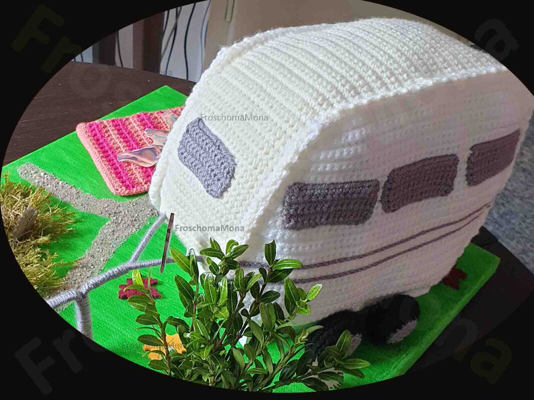 Wie die kleine gehäkelte Decke gehäkelt wird, auf der sich die Camper sonnen können, beschreibe ich ebenfalls in dieser Anleitung.