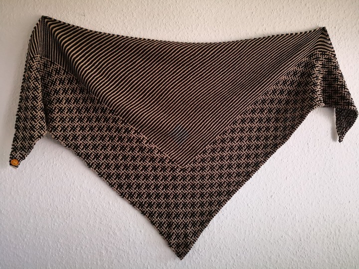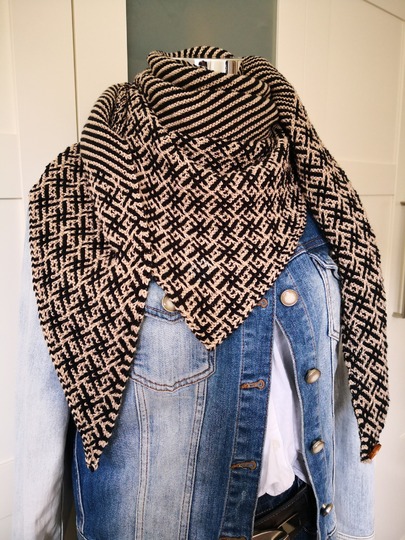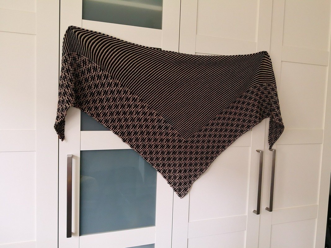 Das Tuch besteht nur aus rechten Maschen, also durchaus Anfänger- und Fernsehtauglich, man muss nur ein wenig zählen, aber der Rapport prägt sich schnell ein.