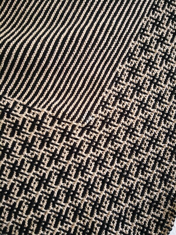 Man benötigt für das Tuch 2 verschieden farbige Garne mit einem deutlichen Kontrast, damit das Muster gut sichtbar ist.