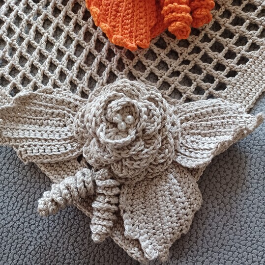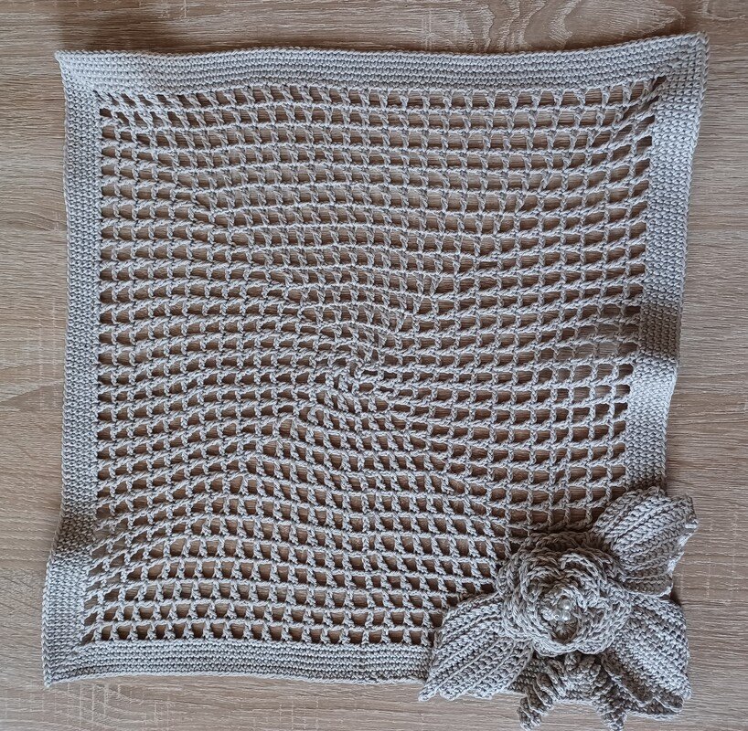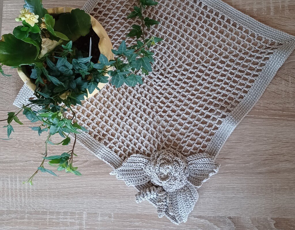 Hier habe ich eine Häkelanleitung für ein Deckchen mit 1 dekorativen Blüte an einer Ecke für euch erstellt.