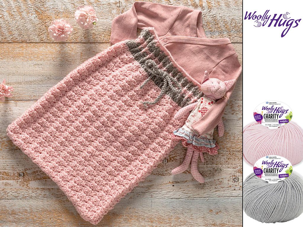 Gehäkelt wurde das Set aus der Woolly Hugs CHARITY. Die (natürlich mulesingfreie!) Qualität ist mit 100 m Lauflänge auf 50 g sehr vielseitig und besonders für Baby- und Kleinkind bestens geeignet, da es sich bei 40 Grad waschen lässt und speichelecht ist. Mit 24 verschiedenen Farben lässt die Farbpalette keine Wünsche offen.