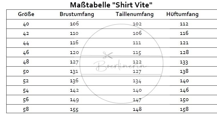 Mit dieser Anleitung und dem Schnittmuster kannst du dir ein Basic-Shirt mit kleinem V-Ausschnitt nähen, den Schnitt aber auch ganz einfach verlängern zu einer Tunika oder einem Kleid, und zwar in den Gr. 40 - 58. Das Shirt hat eingesetzte, kurze Ärmel. Eine Maßtabelle findest du bei den Fotos.