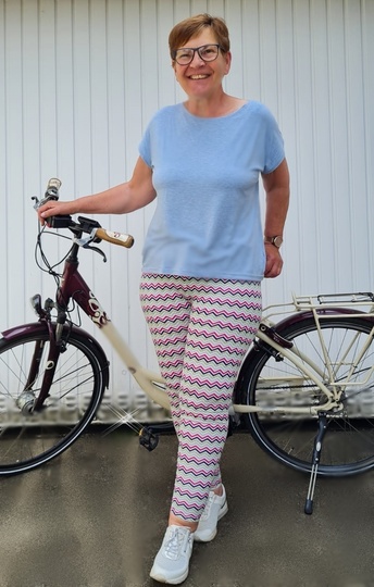 Mit dieser Anleitung und dem Schnittmuster nähst du dir eine bequeme und auch alltagstaugliche Leggings in den Gr. 3XS-4 XL - eine Maßtabelle findet ihr bei den Fotos. Die Hose ist hoch geschnitten, damit sie bei allen Gelegenheiten auch dort sitzen bleibt, wo sie hingehört. Dadurch ist es auch möglich, sie für die ersten Schwangerschaftsmonate zu nutzen. Natürlich hast du die Möglichkeit, den Hosenbund auch etwas tiefer zu setzen. Genäht werden kann diese Hose aus allen elastischen Jerseys, wobei der Elasthananteil im Stoff mindestens 2–5 % betragen sollte. Perfekt zu nähen ist die Leggings mit SportLycra und/oder Viskosejersey. Du benötigst pro Hose ca. 1,5 - 2 m Stoff ausgehend von einer Körpergröße von ca. 1,67 m.