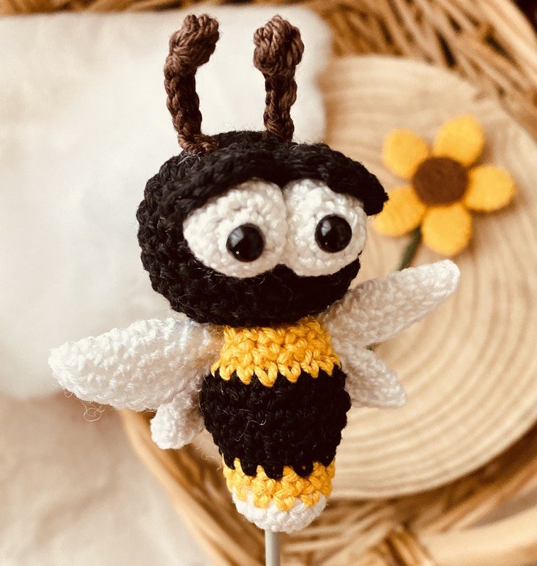 Die kleine Hummel Sille kannst du als Schlüsselanhänger, Kinderwagenkette, Schnullerkette, Mobile oder Glücksbringer verwenden.