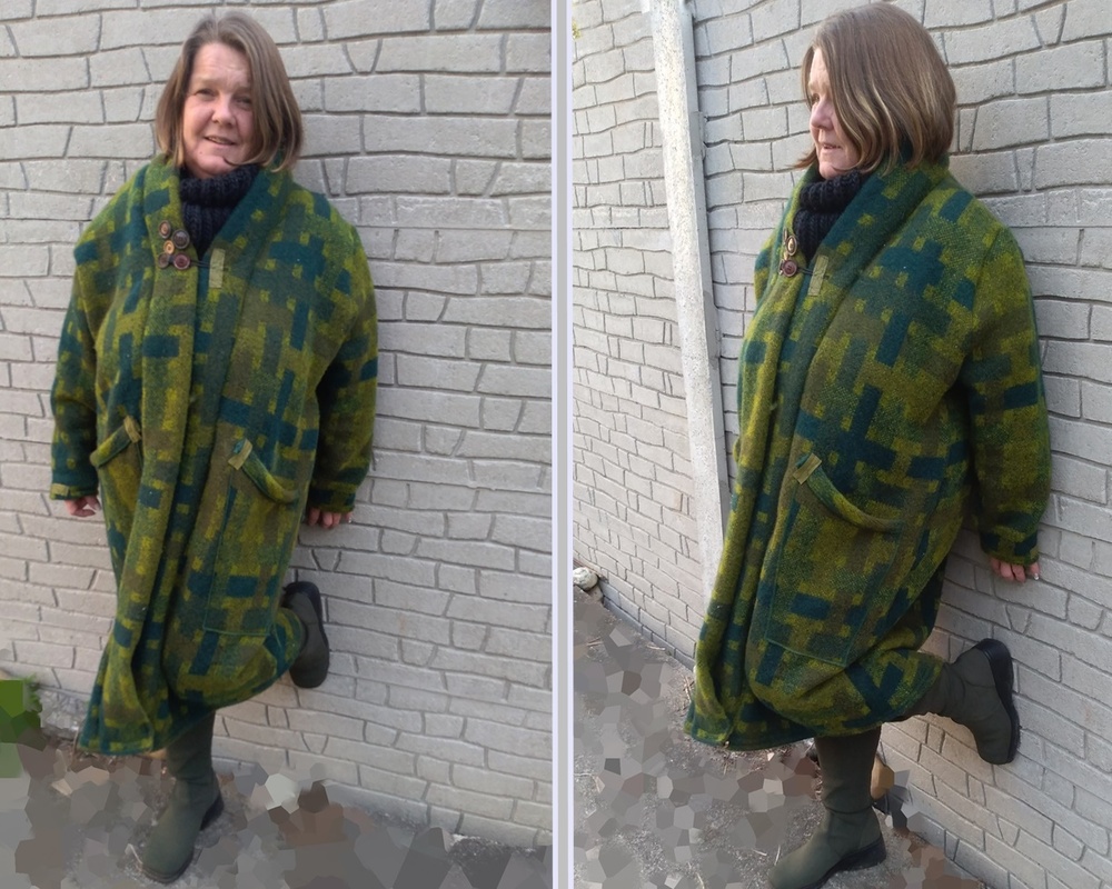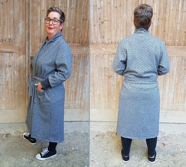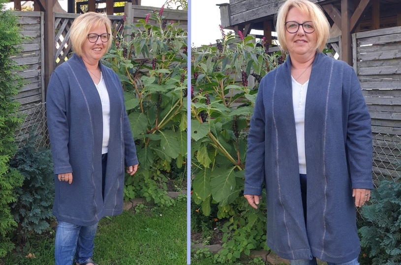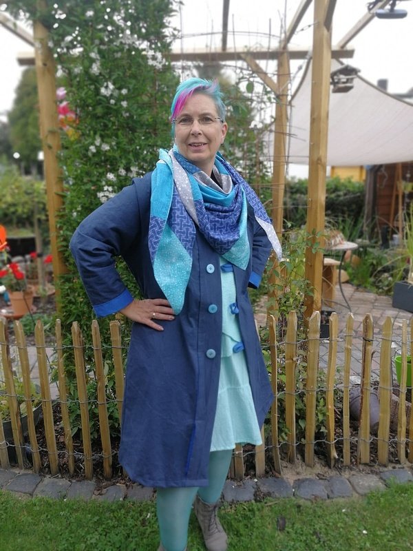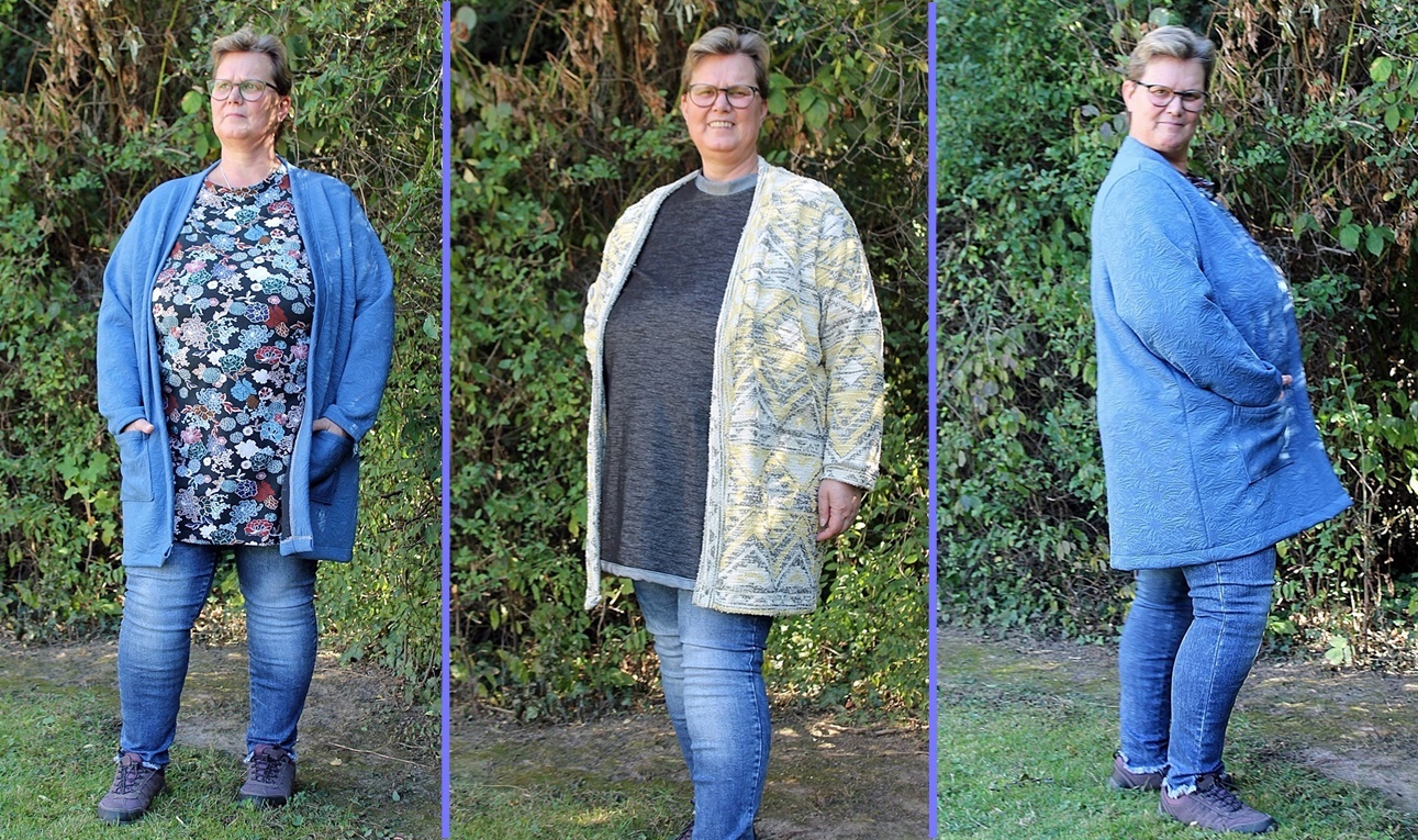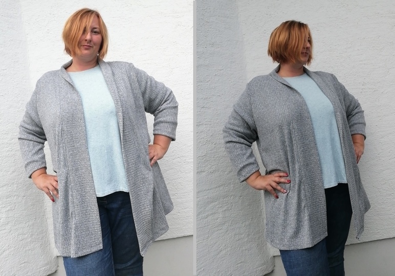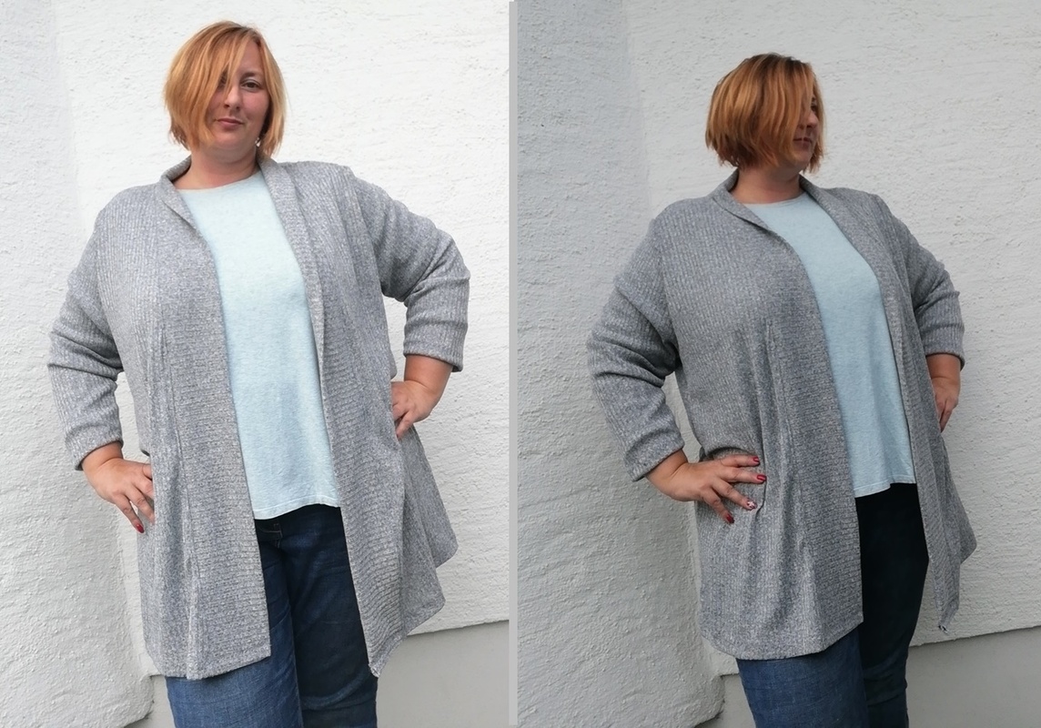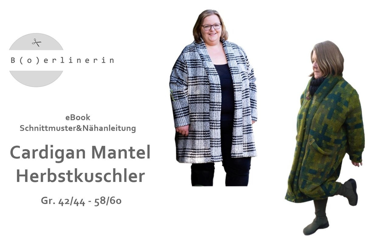Ein lockerer Cardigan-Mantel für die Größen 42 – 58/60 (s. Maßtabelle). Ob in „schick“ fürs Büro oder aber sportlich für die Freizeit – der Schnitt ist sehr vielseitig. Der Basic-Schnitt kann von euch in verschiedenster Form genäht werden. Ob kurz als Jacke, etwas länger als Cardigan oder ganz lang als Mantel.