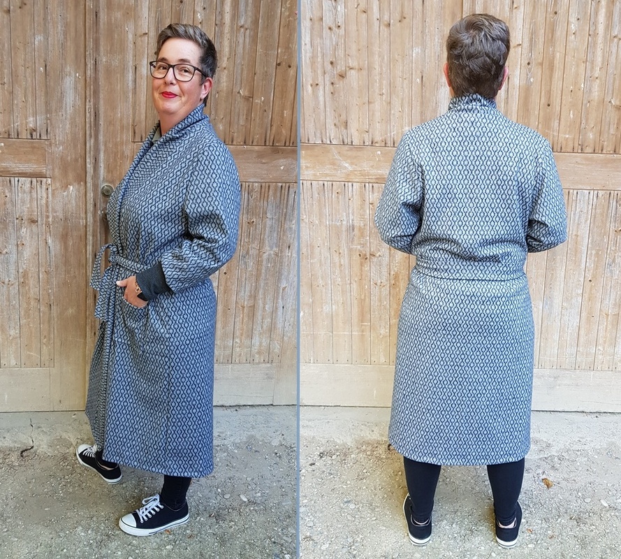 Man kann den Cardigan-Mantel aus allen etwas elastischen Stoffen nähen. Für den Herbst und Winter empfehle ich Grob- und Feinstrickstoffe, Wollstoffe, Sweat oder Fleece/Alpenfleece. Aber auch Walk, Jeans & Cord mit Elasthan sowie leicht dehnbarer Softshell können verwendet werden.