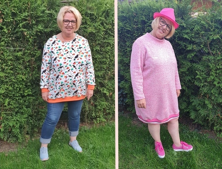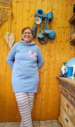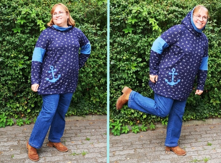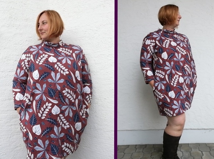 DALINA, ob als kurzer Sweater, kurzes Kleid oder Longhoodie, eines ist sicher: Ihr tragt ein bequemes und legeres Kleidungsstück. Als Longhoodie oder kurzes Kleid endet es von der Länge her ca. 1–2 Hand breit über dem Knie (ausgehend von der Körpergröße von 1,67 m), kann aber natürlich von euch problemlos individuell von der Länge her angepasst werden und ist der ideale Begleiter für Herbst und Winter. In Kombination mit dem Mantel „Herbstkuschler“ näht ihr euch sogar ein tolles Set.