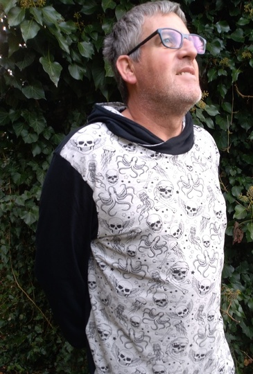 Mit dieser Anleitung und dem Schnittmuster näht ihr einen kuschligen Hoodie für eure Männer – auch für die mit etwas mehr Rundungen (Gr. L -10XL). Genäht werden kann der Pullover aus allen dehnbaren und dickeren Stoffen wie Sweatstoff, Woll-/Strickstoff oder Fleece. Der Schnitt ist auf Basis einer Körpergröße der Herren von 1,75 m konstruiert.
