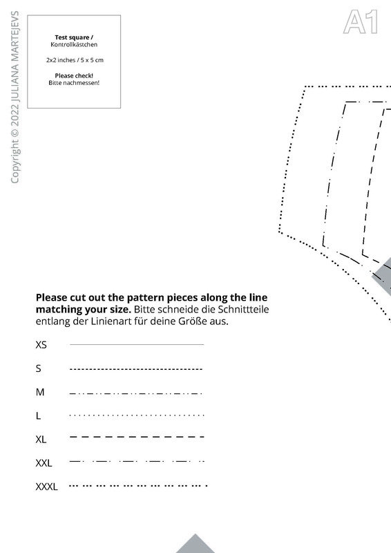 • Schnittmuster für das Kleid in den Größen XS-XXXL inkl. aller Nahtzugaben als PDF in A4 zum Download