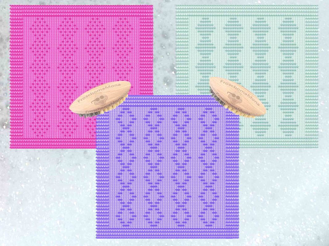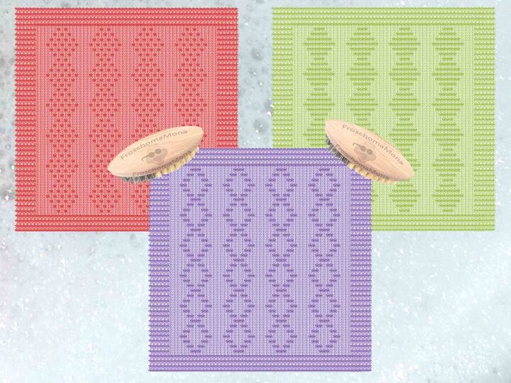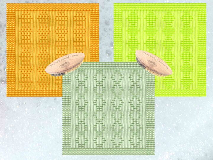 Mit dieser Anleitung zeige ich dir, wie du diese drei hübschen Spültücher / Waschlappen stricken kannst.
