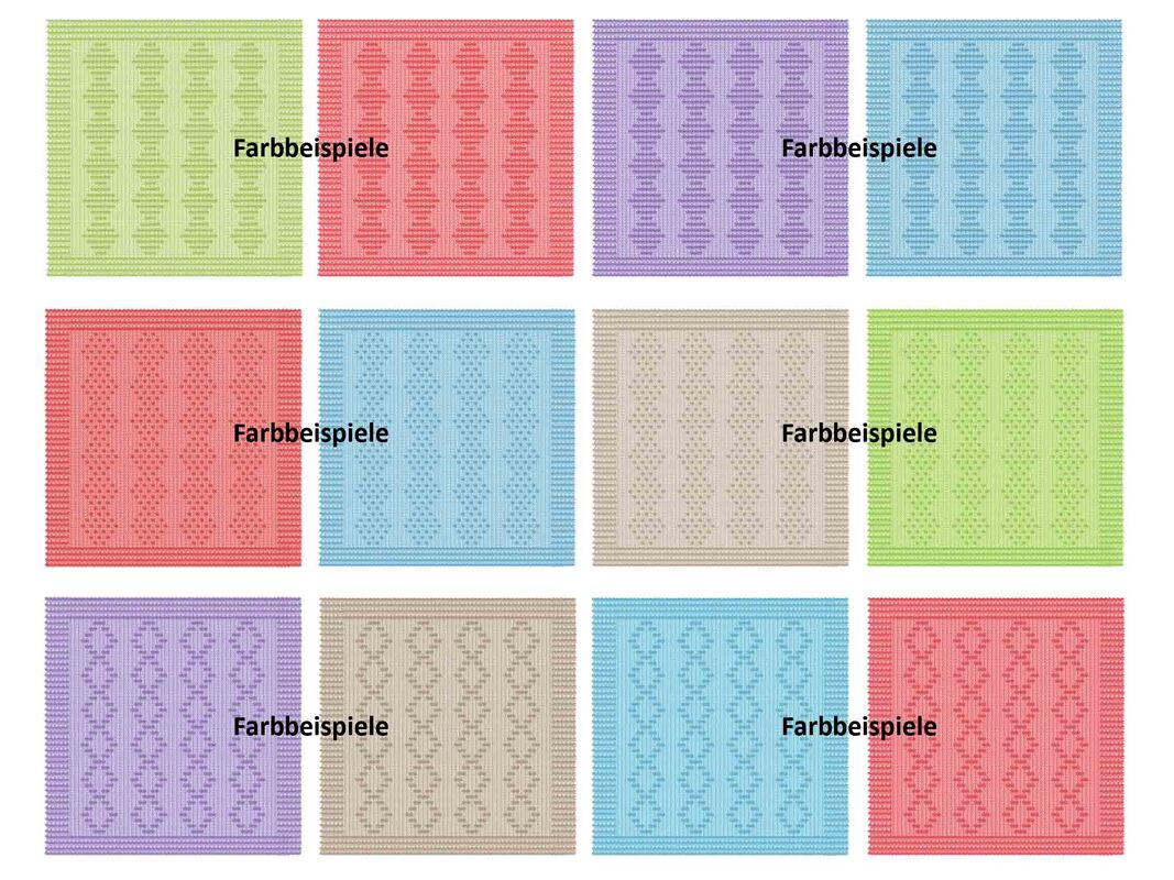 Du kannst das fertige Strickstück nach Fertigstellung spannen und so auf eine bestimmte Größe, auch quadratisch ziehen. Das ist besonders bei Deckchen zu empfehlen, damit sie schön glatt und gerade werden. Auch wird durch das Spannen das Motiv noch besser sichtbar.